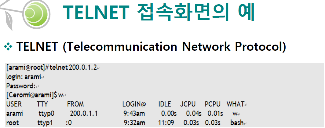 TELNET 접속화면의 예