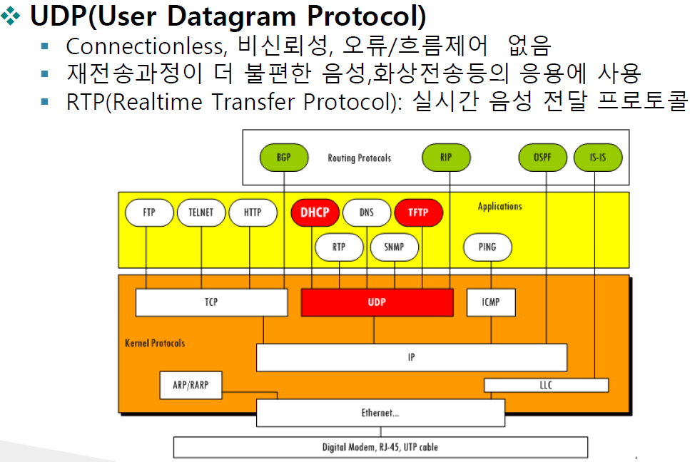 RTP(Realtime Transfer Protocol)도 UDP를 사용합니다.