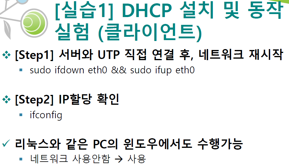[실습 1] DHCP 설치 및 동작 - 실험 클라이언트