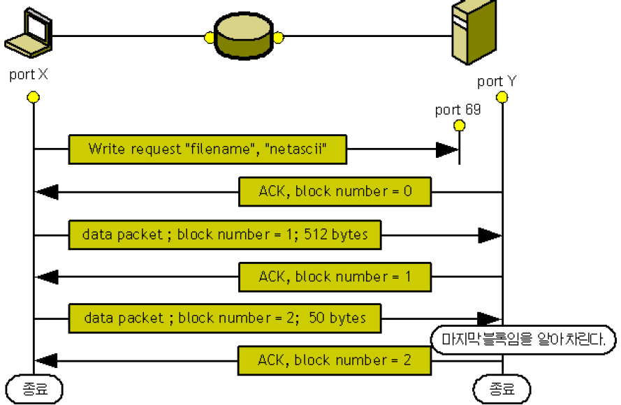 TFTP 파일 write 동작에 의한 패킷 흐름도