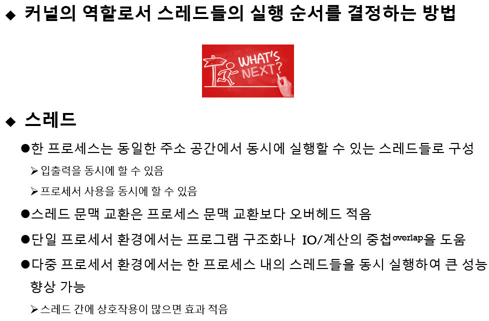 - 한 프로세스 내에 여러 개 스레드들이 있을 때