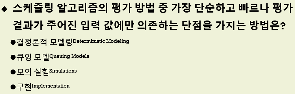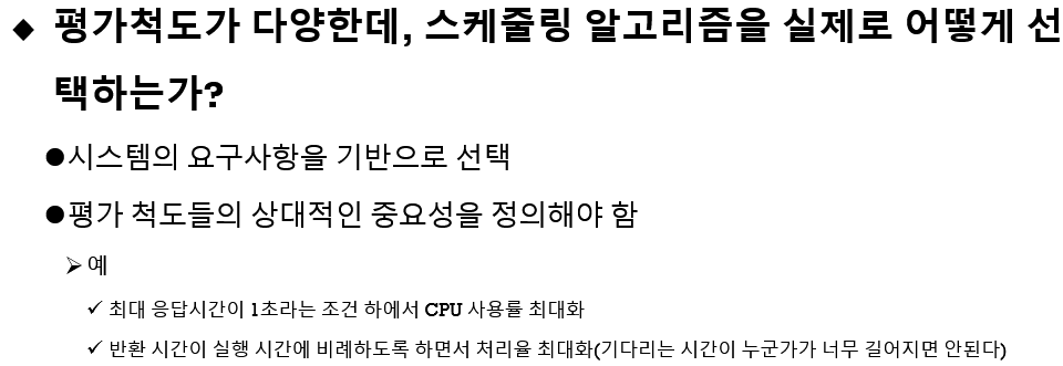평가척도가 다양한데, 스케줄링 알고리즘을 실제로 어떻게 선택하는가?