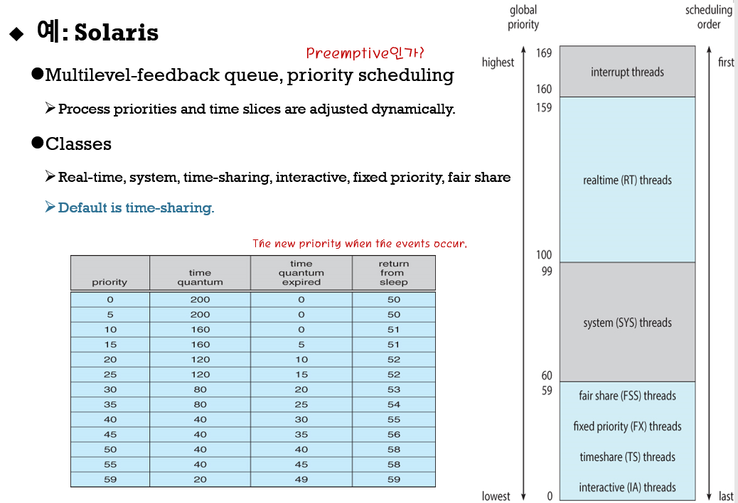Solaris에서 사용하는 스케줄링은 preempive인가?
