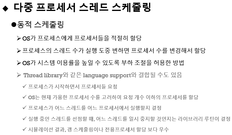 동적 스케줄링은 부하공유, 갱 스케줄링 같은 것을 적절히 섞어서 사용하는 것입니다