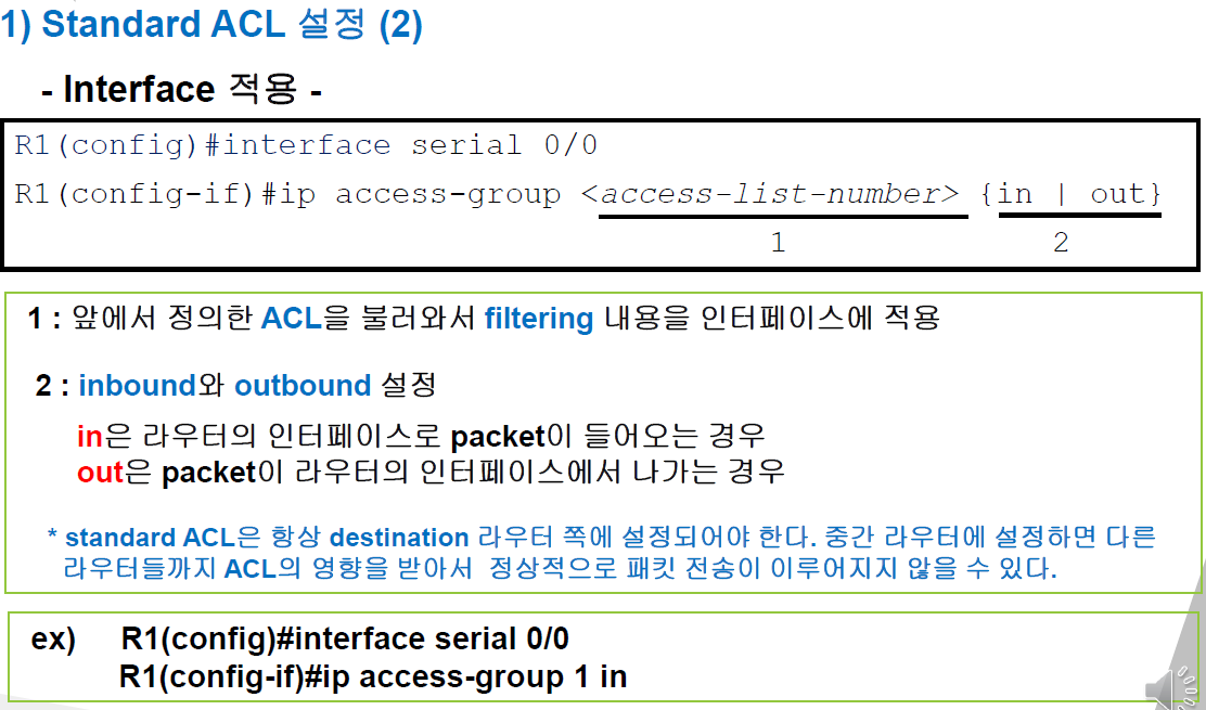 standard ACL은 항상 destination 라우터 쪽에 설정되어야 한다 .