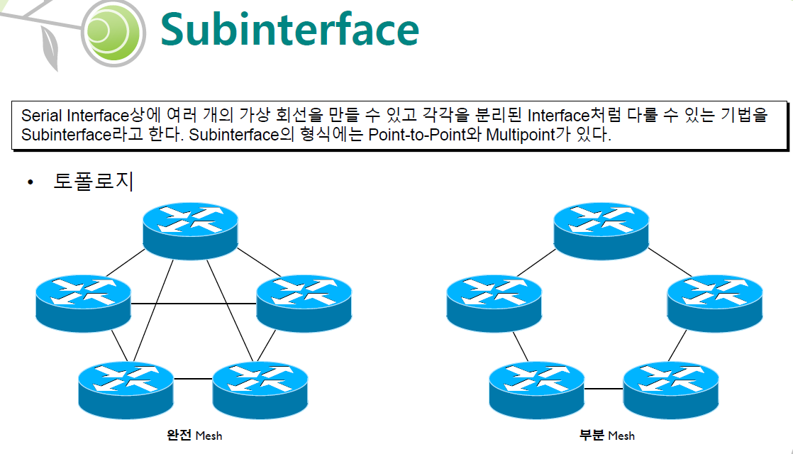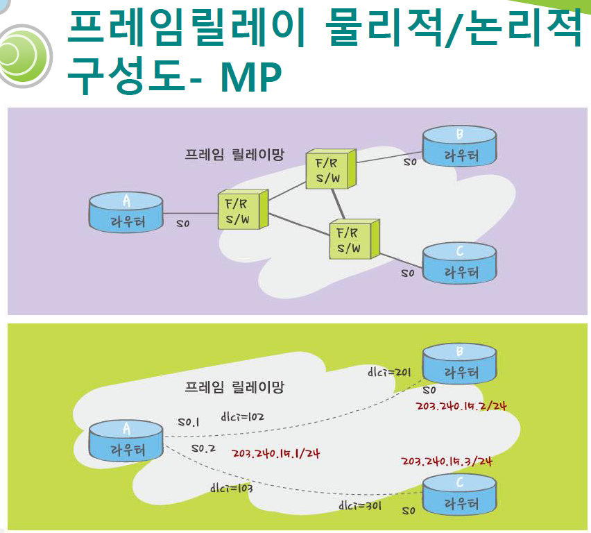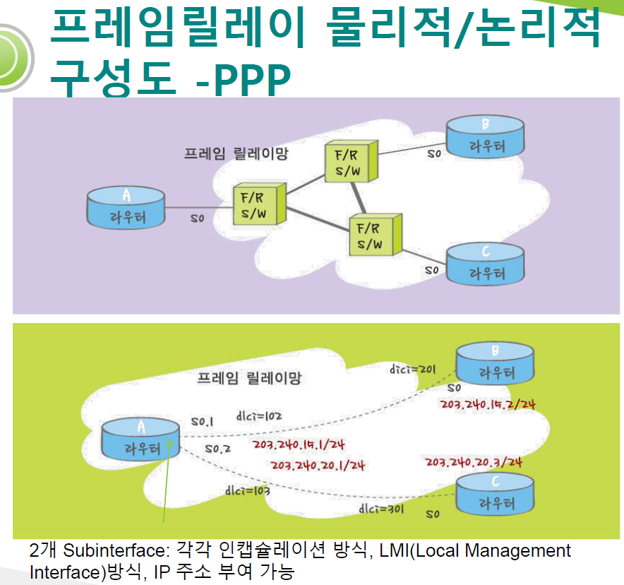 Fram relay에는 subinterface 계념이 있습니다.