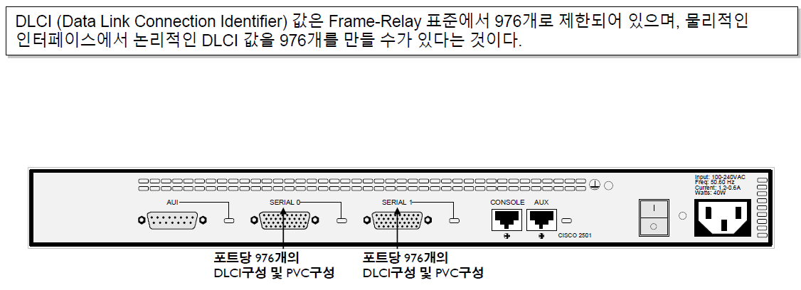 DLCI(Data Link Connection Identifier) 값은 Frame-Relay 표준에서 976개로 제한되어 있으며, 물리적인 인터페이스에서 논리적인 DLCI 값을 976개를 만들 수가 있다는 것입니다.