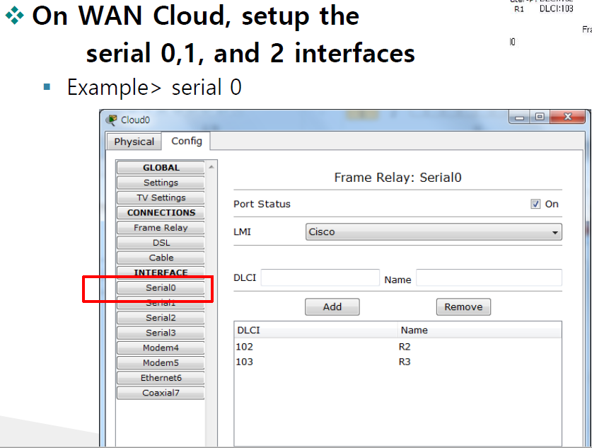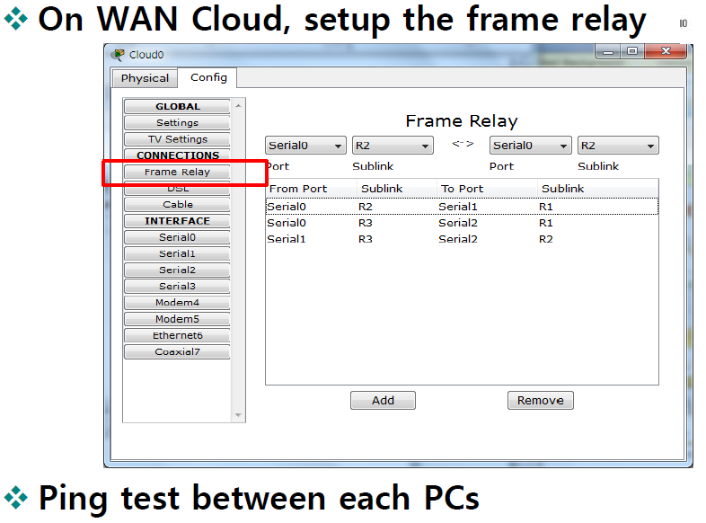 WAN Cloud의 Rrame relay설정하기