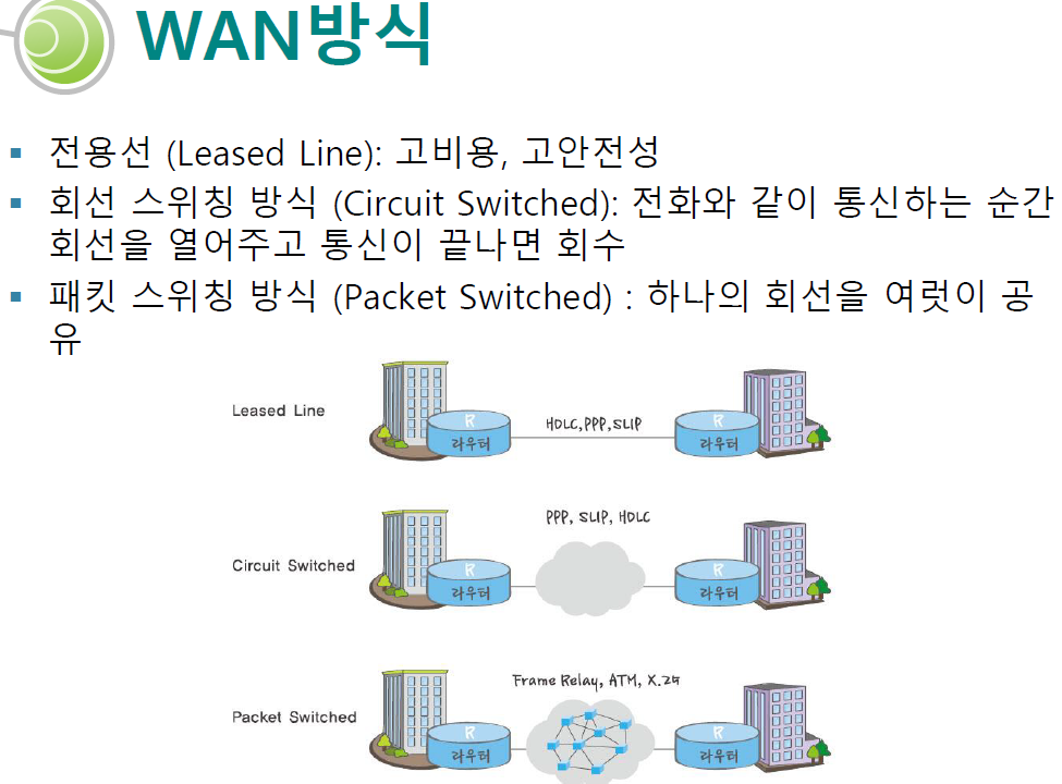 X.25, PPP는 전화망을 이용해서 광역망을 사용했습니다.