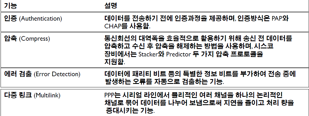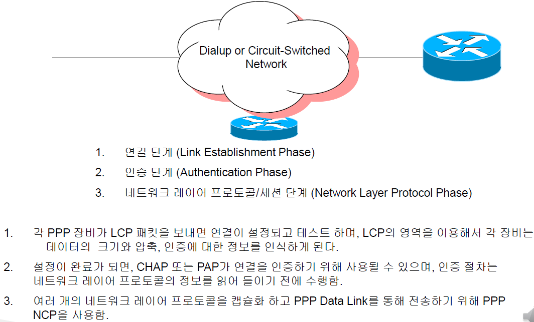 네트워크 레이어 프로토콜의 정보를 읽어 들이기 전에 수행함. - 3. 여러 개의 네트워크 레이어 프로토콜을 캡슐화 하고 PPP Data Link를 통해 전송하기 위해 PPP