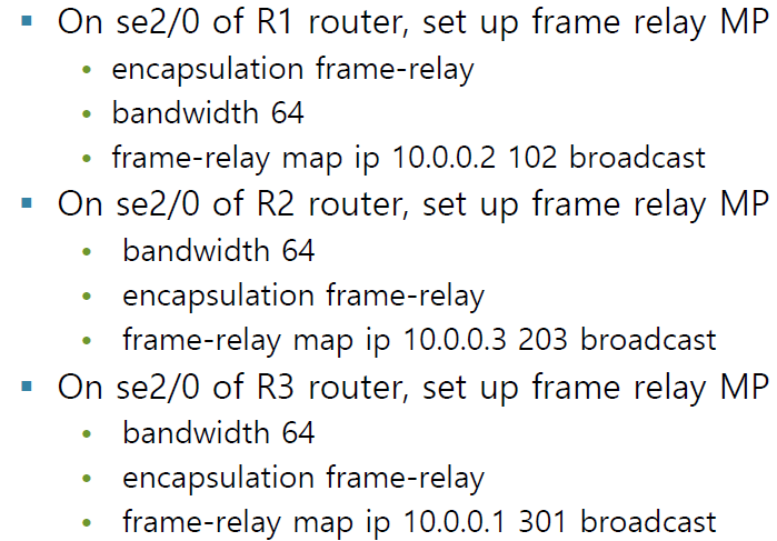 router1입장에서 보면 10.0.0.2(router2)로 가는 연결은 나의 dlci 102로 나가면된다.