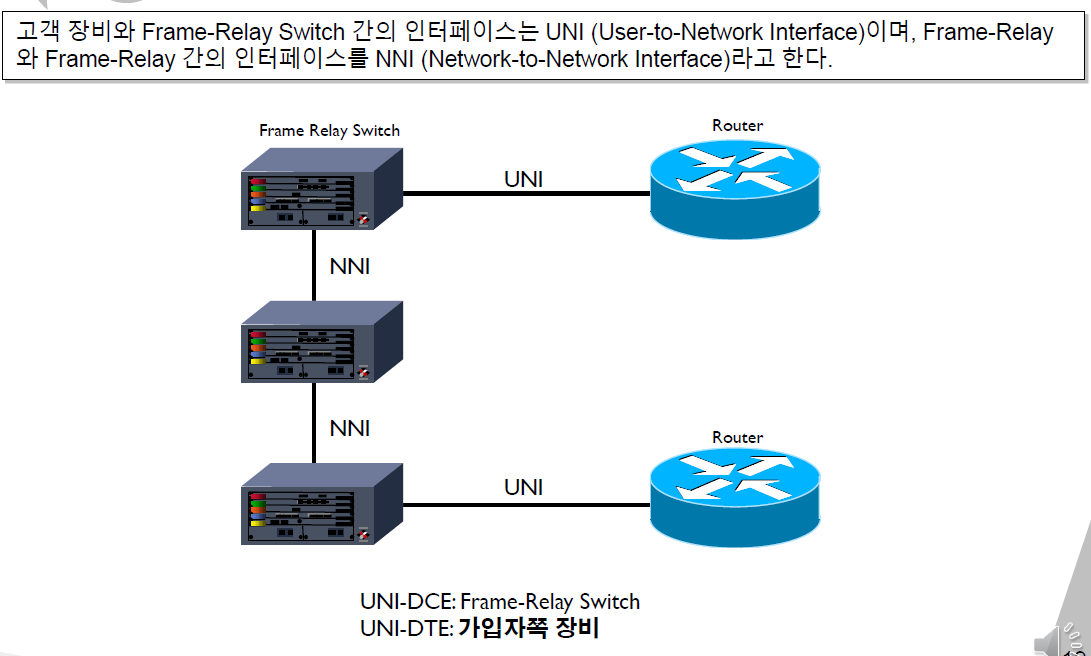 고객 장비와 Frame-Relay Switch 간의 인터페이스는 UNI (User-to-Network Interface)라고 합니다.