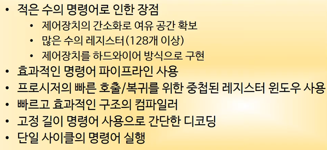 -CISC(Complex instruction Set Computer)에 비하여 새로운 설계 개념 제시