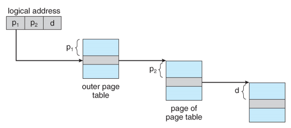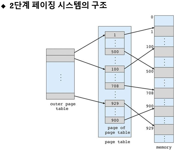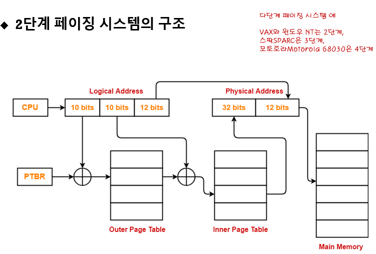 2^20인 테이블을 쪼개서 10bit는 outer page table로 10bit는 inner page table로