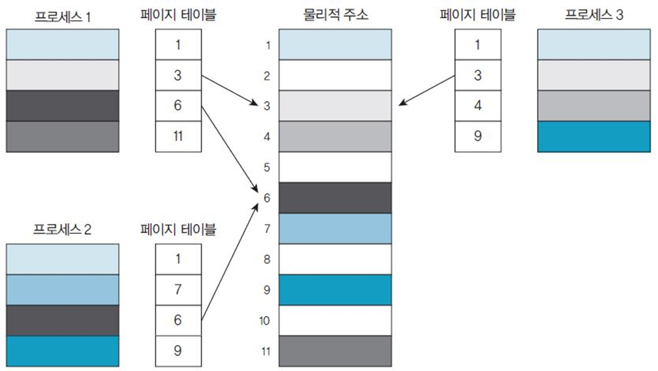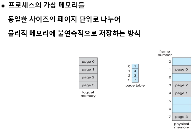 - 연속 할당( 큰 공간 필요)보다는 작은 공간으로 잘 사용할 수 있습니다.