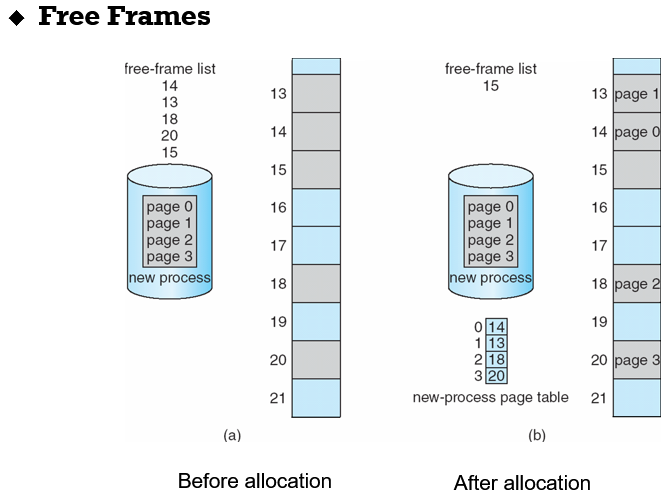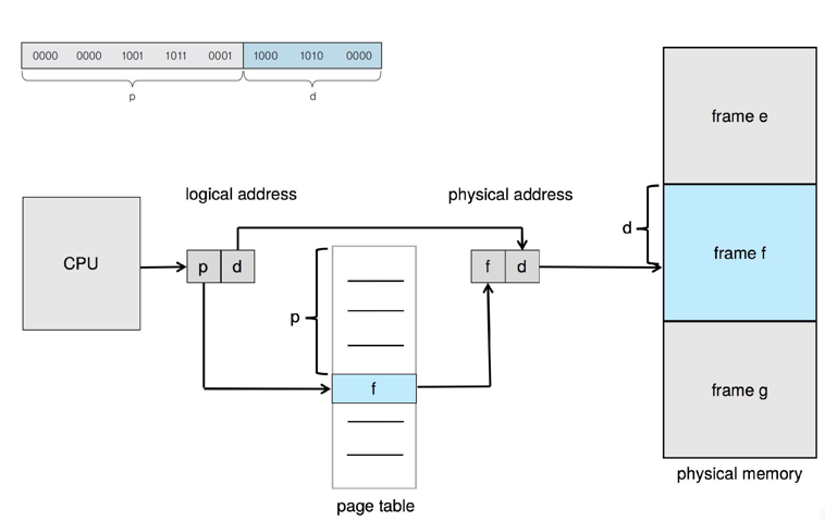 - 페이징에는 메모리 관리 장치(MMU)에 프레임 번호가 있습니다.
