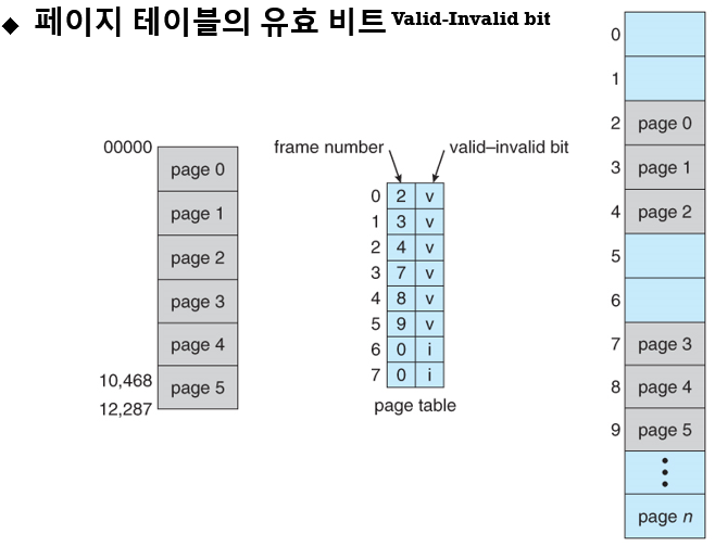 페이지 테이블의 유효 비트 - 페이지의 주기억장치 적재 여부