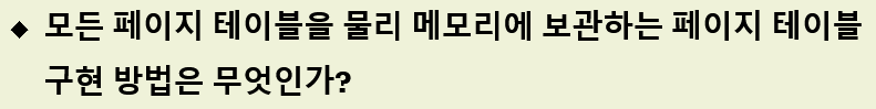 - 페이지 테이블은 메모리에 저장