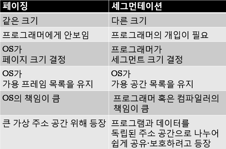 페이징 vs 세그먼테이션(중요!)