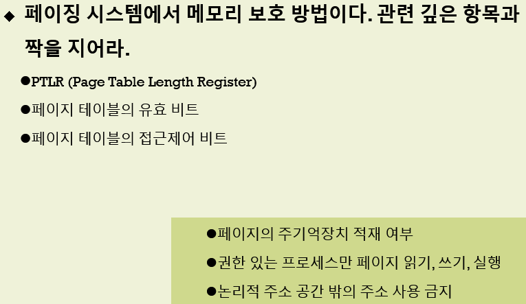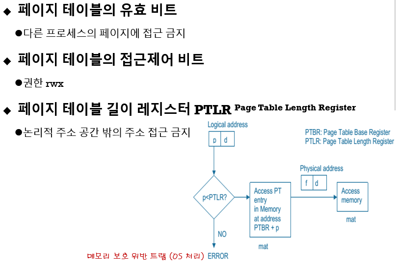 이것을 페이지 테이블 길이 레지스터에 저장하고 이것보다 작을 때만 페이지에 접근하게 됩니다.