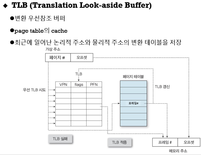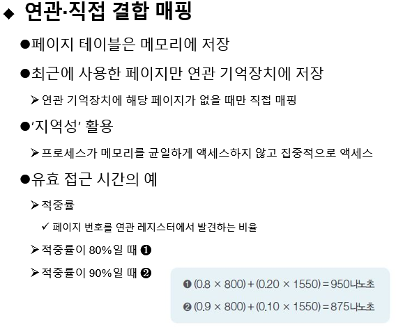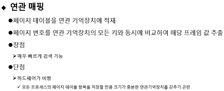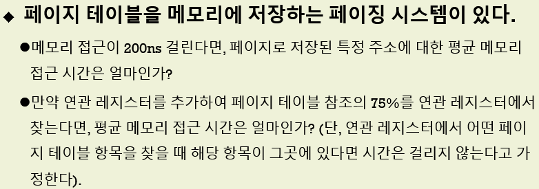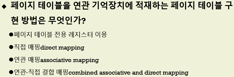 - -TLB를 위한 캐시나 연관 기억장치 도입 시 하드웨어 가격이 상승