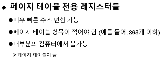 페이지 테이블을 레지스터로 구성하려면 소규모 시스템에서 가능합니다.