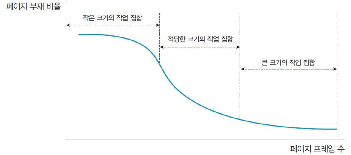 - 너무 크면 실제 작업 집합을 여러 개 포함 -> 낭비