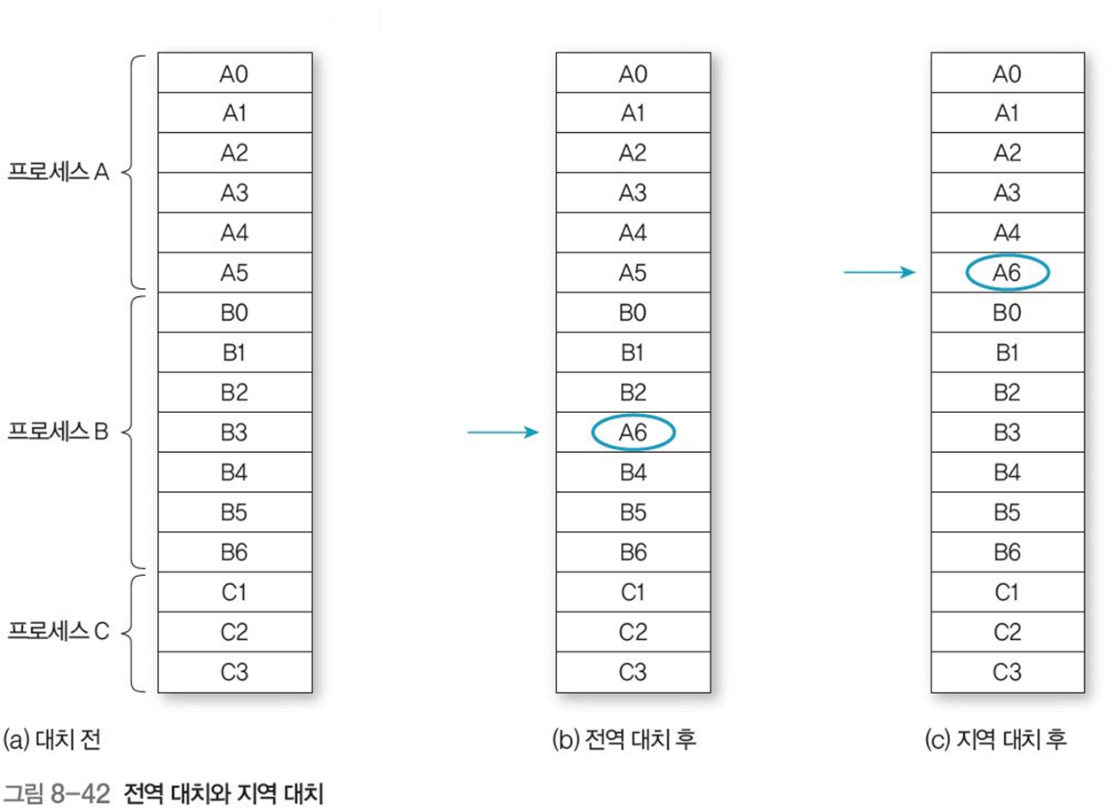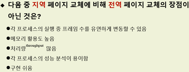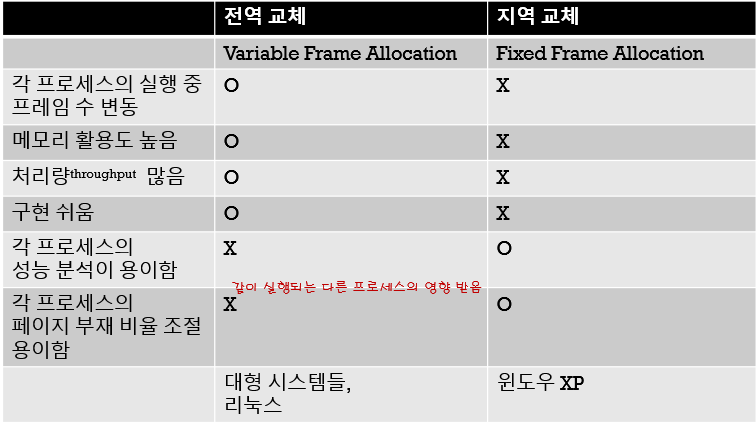 전역 교체는 가변 프레임 할당 알고리즘과 관계가 많습니다.