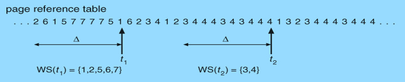 즉, 스래싱을 예방하려면 프로세스에 작업 집합 만큼 할당하면 됩니다.
