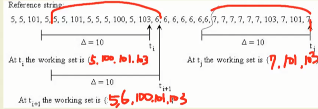 10번 동안 액세스 한 페이지 번호를 모아서 작업 집합으로 봅니다.