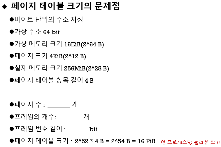 페이지 테이블이 너무 커질 때 문제가 있습니다.