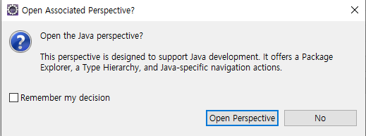 화면을 java에 개발에 맞게 변경하겠습니까 라고 묻는 것