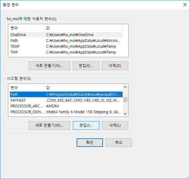 시스템 변수에 Path에 JDK의 bin디렉토리를 추가한다.