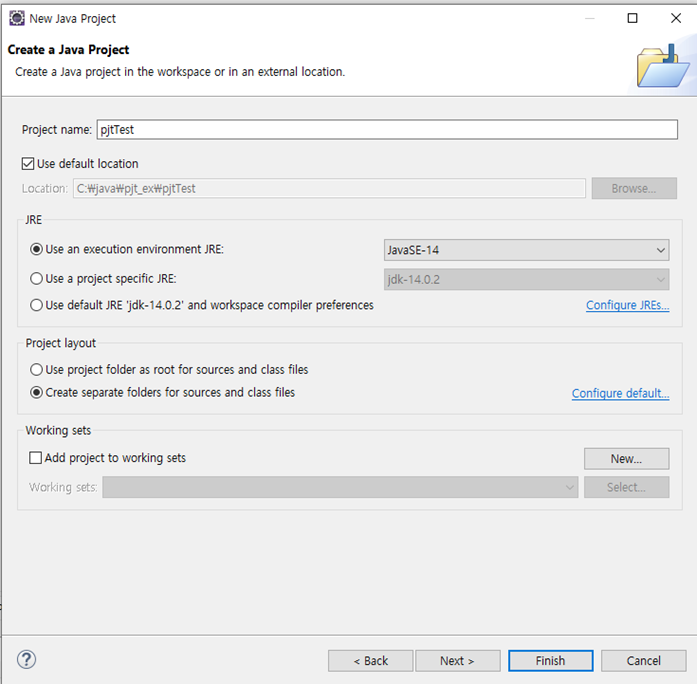 jre를 선택해준다. (java14 버전을 다운받았다)