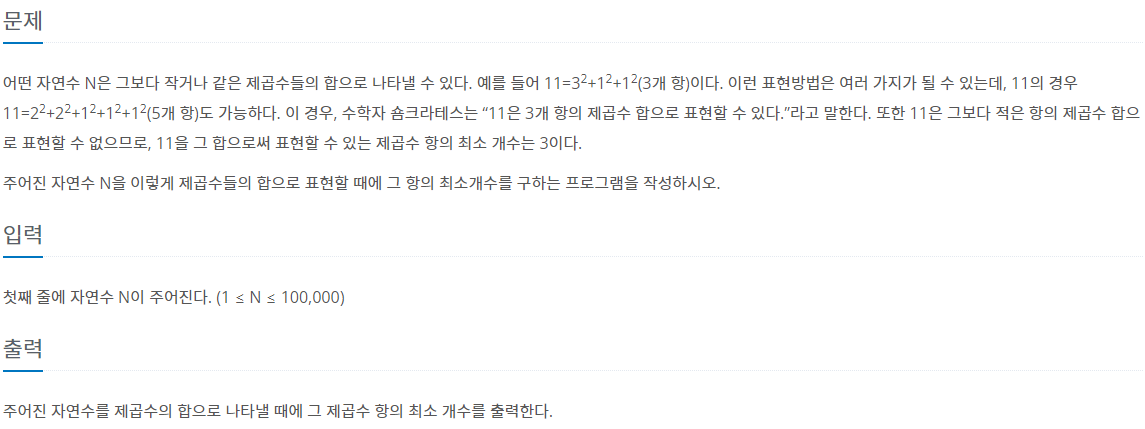 if( dp[i] > dp[i-j*j] + 1):