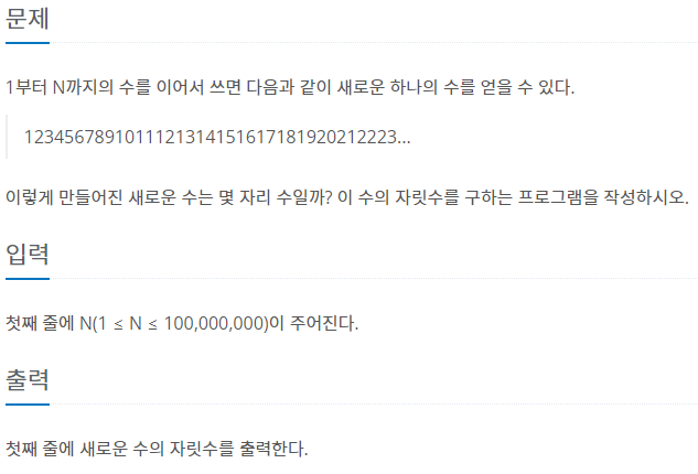 진짜 구해야 할 값은 그 수의 자리수를 뺀다음 +1을 해줍니다.(0도 포함시켜야 합니다.)