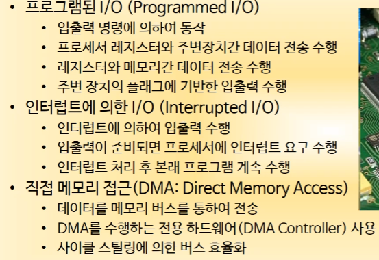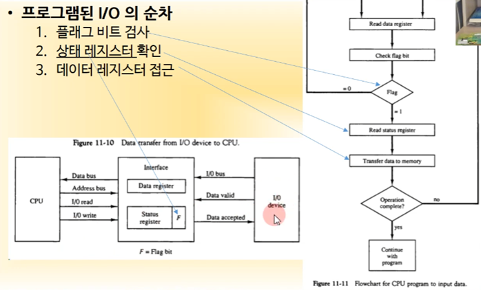 인터럽트에 의한 I/o– cpu는 가만히 있는데 주변장치가 데이터를 전송할 것이 있다면 인터럽트로 cpu한태 알려주는 것이다.