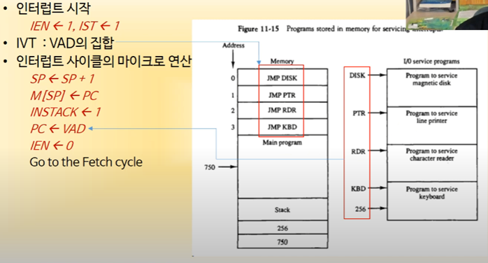 disk와 reader가 동시에 입력이 들어오면 disk를 먼저 해준다. 그러면 시작 번지를 cpu에 보내준다.