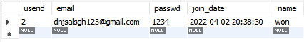spring에서 select * from member_table where email="dnjsalsgh123@gmail.com" and passwd="1234"; 이런 쿼리를 동작해서 값이 있다면 테이블을 json 객체로 넘겨주고 아니면 예외처리를 해보려고 합니다.