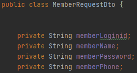 즉 MemberRequestDto클래스는 beans 클래스라야 한다.