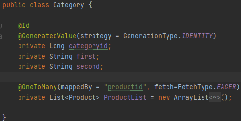 여기서 category라는 변수는 제가 만든 category 테이블 entity 입니다.