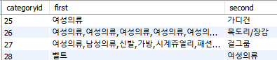 처음 카테고리를 나누려할 때 1차원 적으로 의류, 신발, 가방 등... 이렇게만 나누려고 했습니다. 다른 팀원들과 이야기 해보니 2차까지는 분류가 필요하다고 판단했습니다.