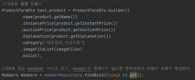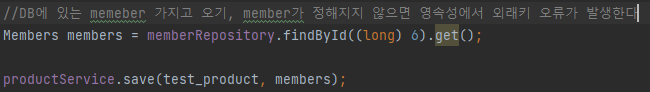 그런데 save를 하기 전 Product와 외래키로 연결되어 있는 Members객체가 필요합니다.
