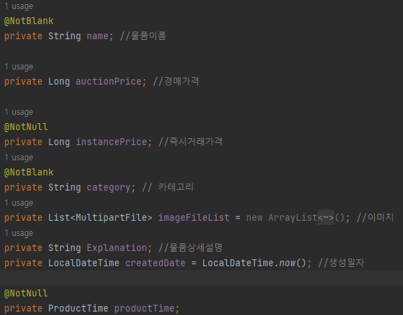 지금 ProductFormDto는 MultipartFile로 DB에 저장하고 있습니다. 현재 저장되어 있는 img를 MultipartFile로 변환시켜서 넣어보면 좋겠지만 아직은 더미 데이터가 들어갑니다. 이미지 파일형태로 들어가는것을 구현해봐야 겠습니다.