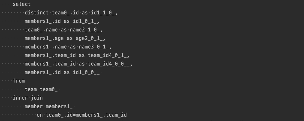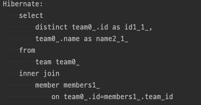 일반적으로 생각하는 Team과 Member가 join 된 형태의 쿼리가 실행되기는 합니다.