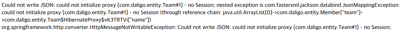 그런데 Lazy상태이니 select는 해오지 못하고 proxy상태로 json으로 바뀌려고 하니깐 에러가 뜨는 것입니다.