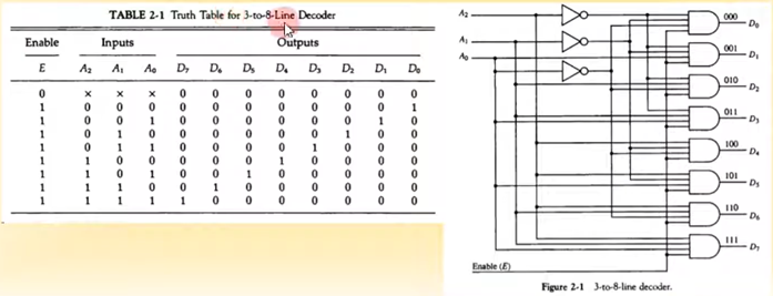 8개의 출력중 1개만 사용한다. A2,A1,A0에 들어오는 값에 따라 1이되는 값이 1개만 있다. 그것만 출력이 된다.