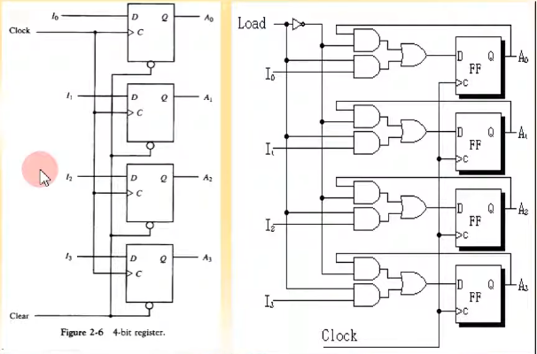 오른쪽은 클럭펄스가 들어와도 load의 값이1이 되지 않으면 저장이 되지 않는다. and에 걸려 0으로 되기 때문이다.