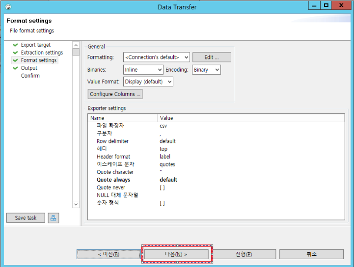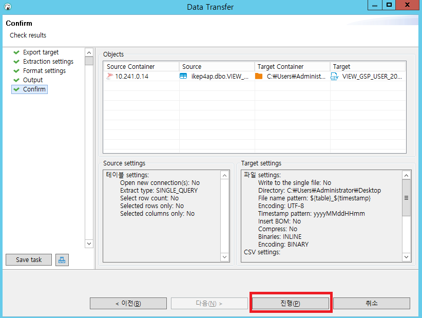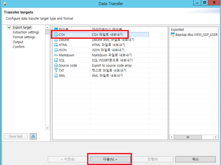 다음 진행을 하면 csv 파일이 추출 됩니다.