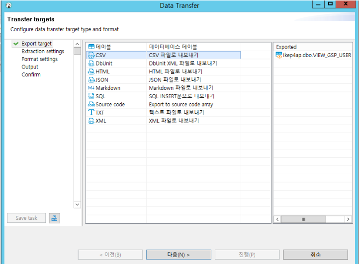 원하는 테이블을 오른쪽 클릭 -> 데이터 내보내기